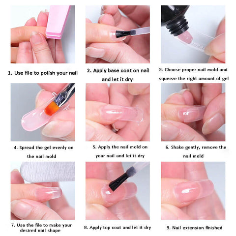 • [Easy To Apply & Long Lasting] The poly gel is fairly easy to use for beginners. No glue needed, just follow the simple instruction on our listing page. The gel is also durable and strong, the nails wouldn’t lift even after 3-4 weeks or even longer if you make your nails the right way (filing, buffering, cleaning, applying base coat and topcoat and properly cured).