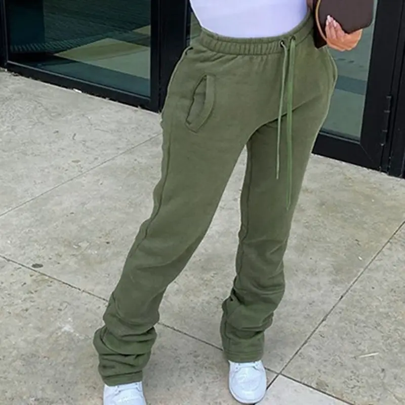 • Load image into Gallery viewer, Drawstring Solid Stacked Pants